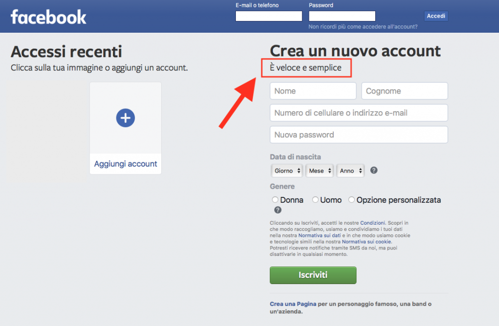 Tutto ciò ha spinto Facebook a cambiare il propio claim in home page: iscriversi a Facebook non è più gratis per sempre ma ” è veloce e semplice”.